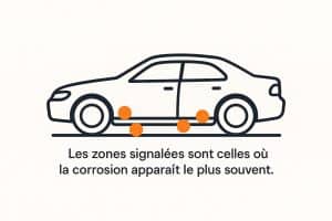 On peut avoir une bonne idée visuelle de l’état général (peinture, roues, capote) sur une photo, mais certaines choses restent invisibles, comme la corrosion sous les ailes. C’est pourquoi nous recommandons toujours de voir des clichés sous plusieurs angles, dont l’arrière et le dessous si possible, pour ne pas se laisser tromper par une seule image.